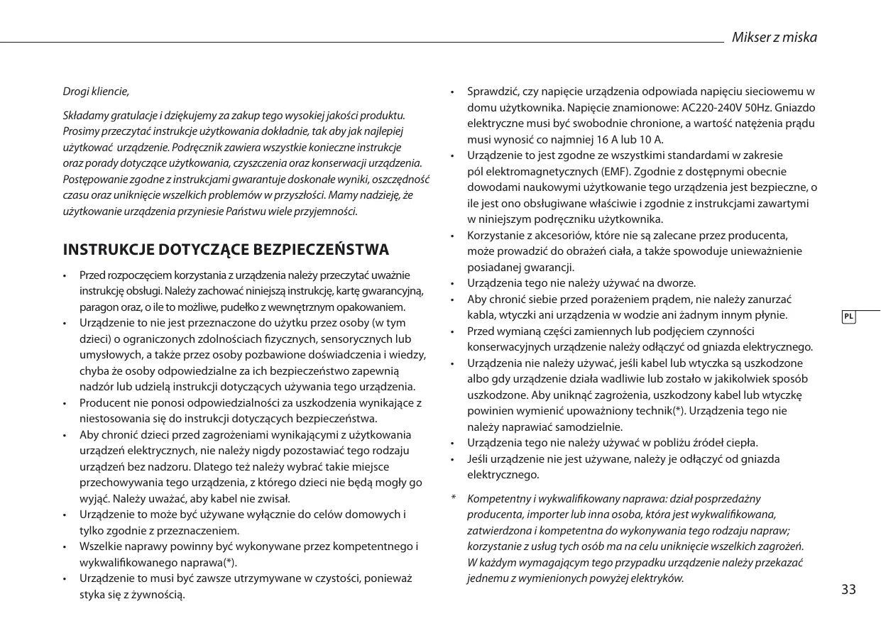 - Kompetenty i wykwalifikowy naprawa: dzial posprzedañny producenta, importer lub inna osoba, która jest wykwalifikOWANA, zatwierdzona i kompetentna do wykonywania thereof rodżaju napraw; korzystanie z uslug tych其中之一 calu uniknięcie wszelkich zagrożen. W kaźdym wymagajycym thereof przypadku urzędzenia naleź przyzekazać jeder nemu z wymiensionych powzej elektryków.