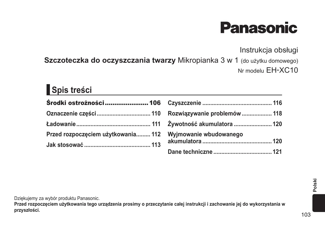 INSTRUKCJA OBSŁUGI EHXC10 PANASONIC