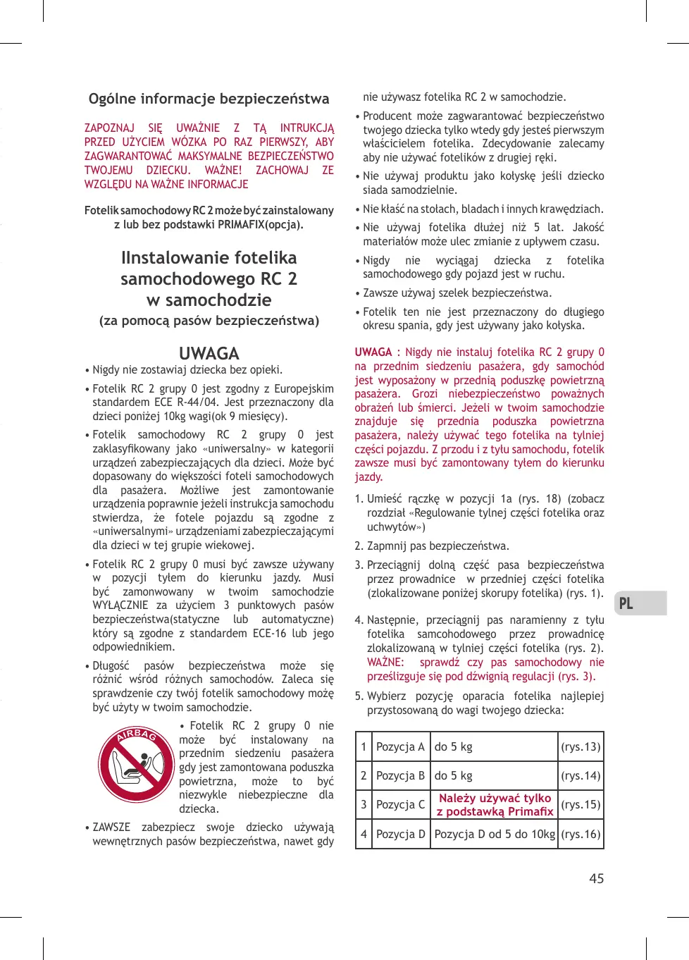 1 Ne pas utiliser le tablier du siège auto RC 2 dans le véhicule. En cas d’urgence, il gênerait l’accès à l’enfant.