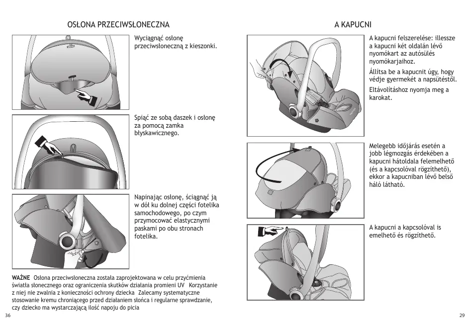 IMPORTANT : Le protège soleil est conçu pour diminuer l éblouissement du soleil et limiter l effet des rayons UV Son utilisation ne vous dispense pas de protéger votre enfant Aussi, nous vous recommandons d utiliser systématiquement une crème protectrice solaire et de veiller à l hydratation de votre enfant 62