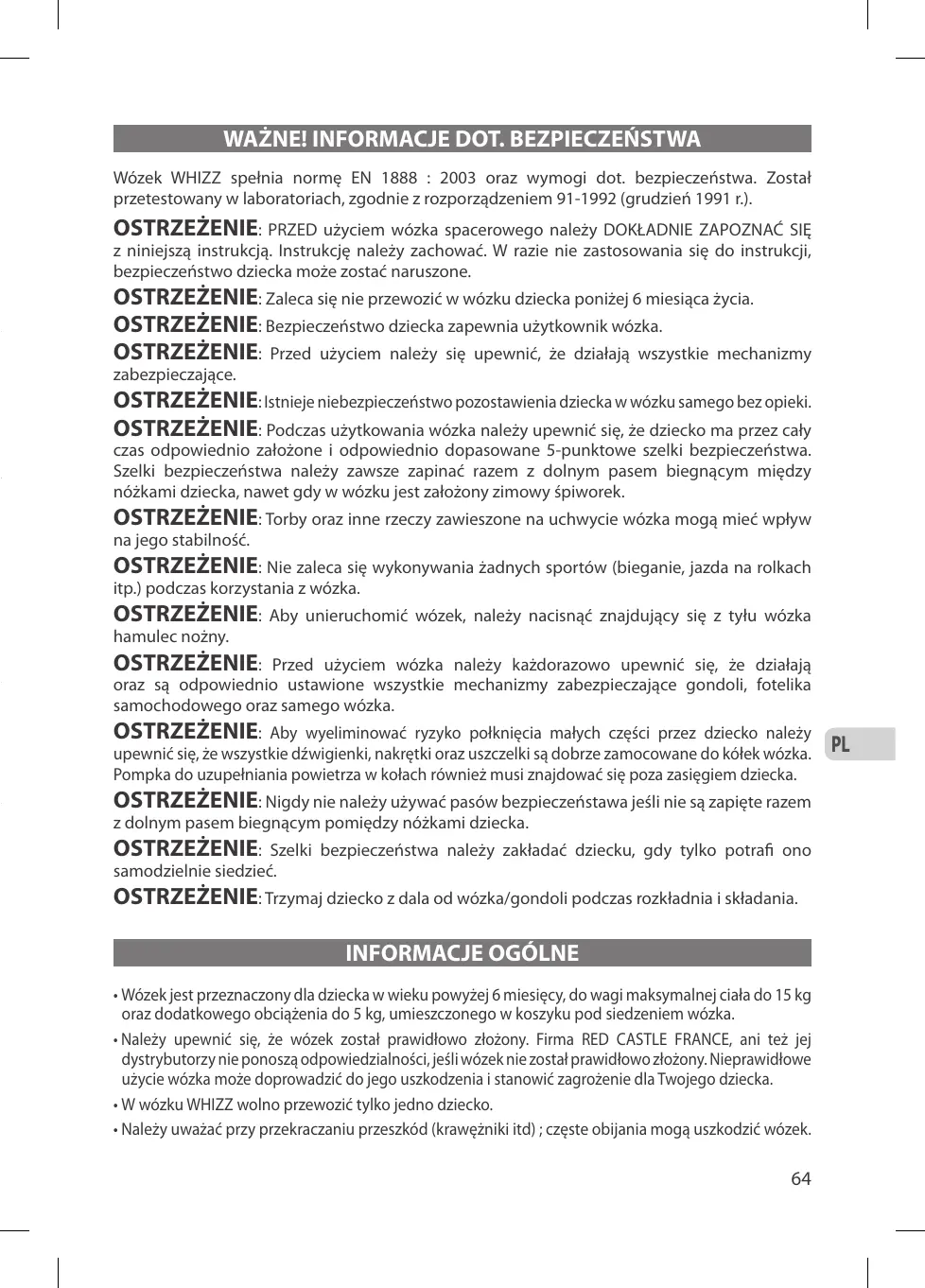 INSTRUKCJA OBSŁUGI WHIZZ RED CASTLE