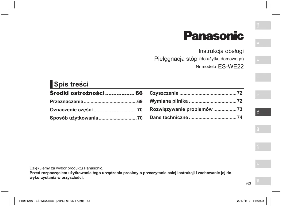 INSTRUKCJA OBSŁUGI ESWE22 PANASONIC