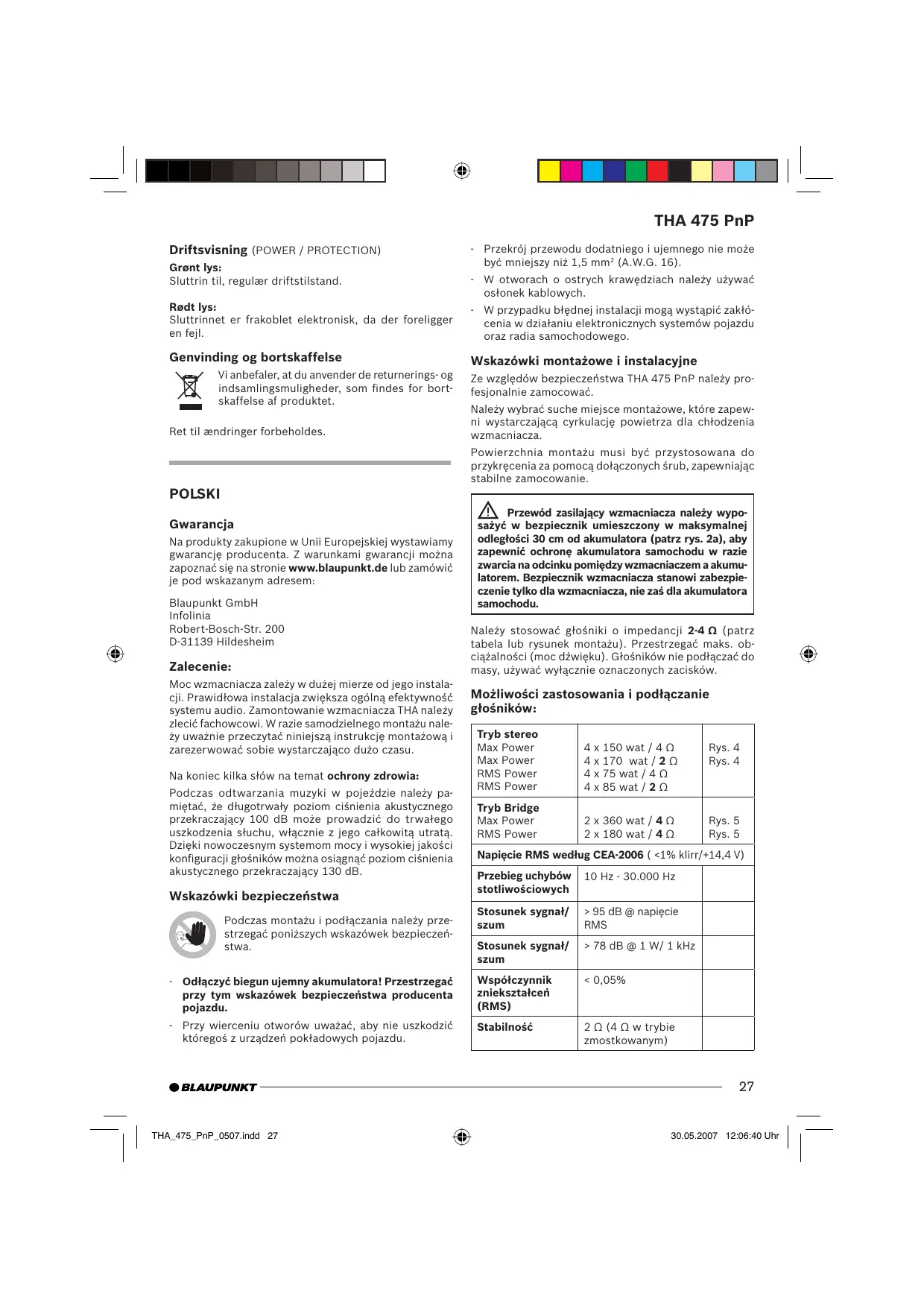 THA 475 PNP - Wzmacniacz mocy BLAUPUNKT - Bezpłatna instrukcja obsługi