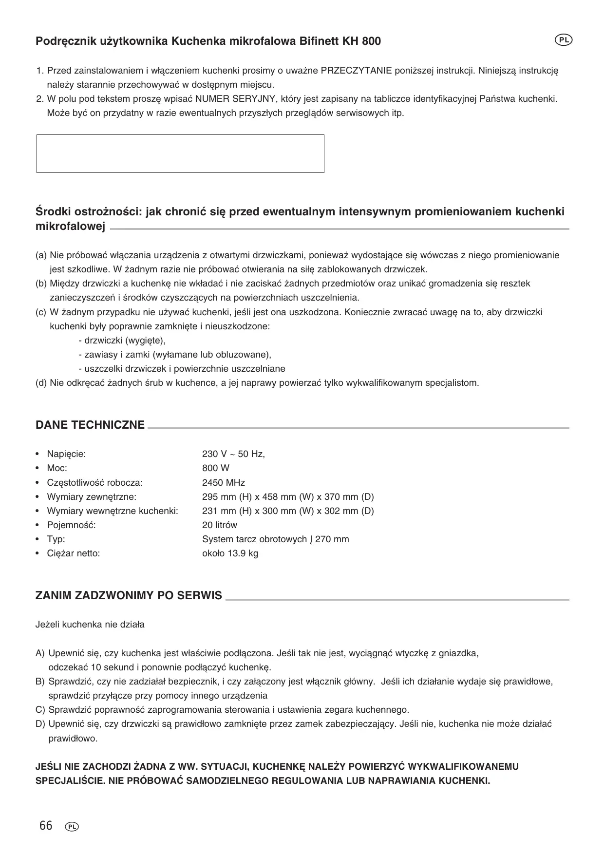 INSTRUKCJA OBSŁUGI KH 800 BIFINETT