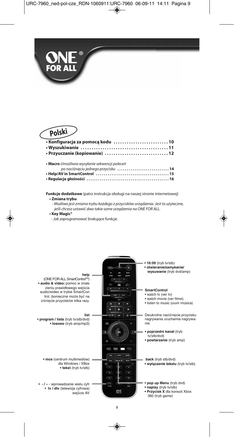 URC-7960, URC 7962 - Uniwersalny pilot ONE FOR ALL - Bezpłatna instrukcja obsługi