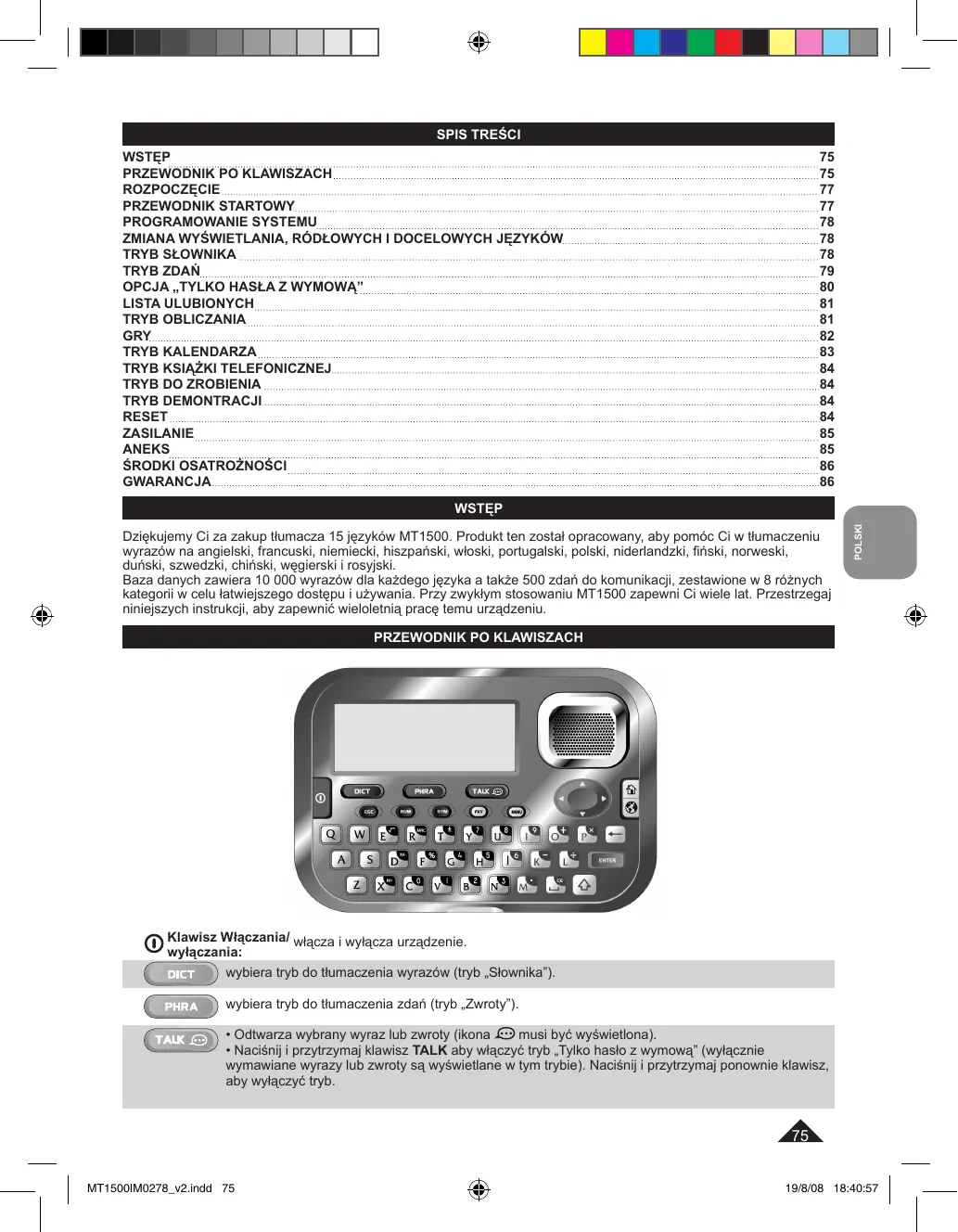 MT1500 - Tłumacz elektroniczny LEXIBOOK - Bezpłatna instrukcja obsługi