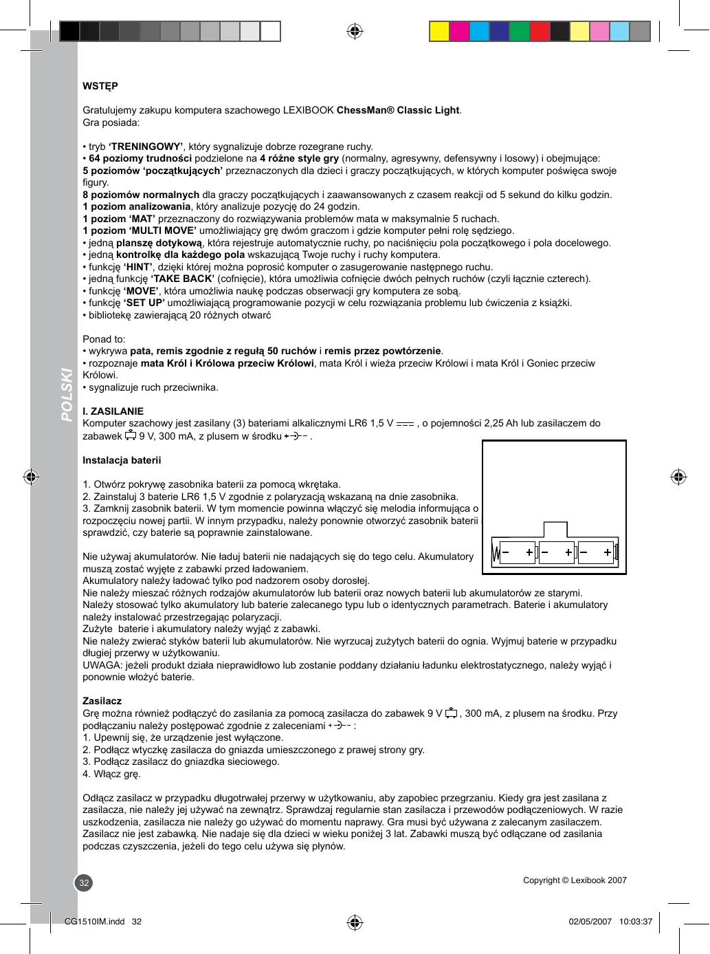 INSTRUKCJA OBSŁUGI CHESSMAN CLASSIC LIGHT LEXIBOOK