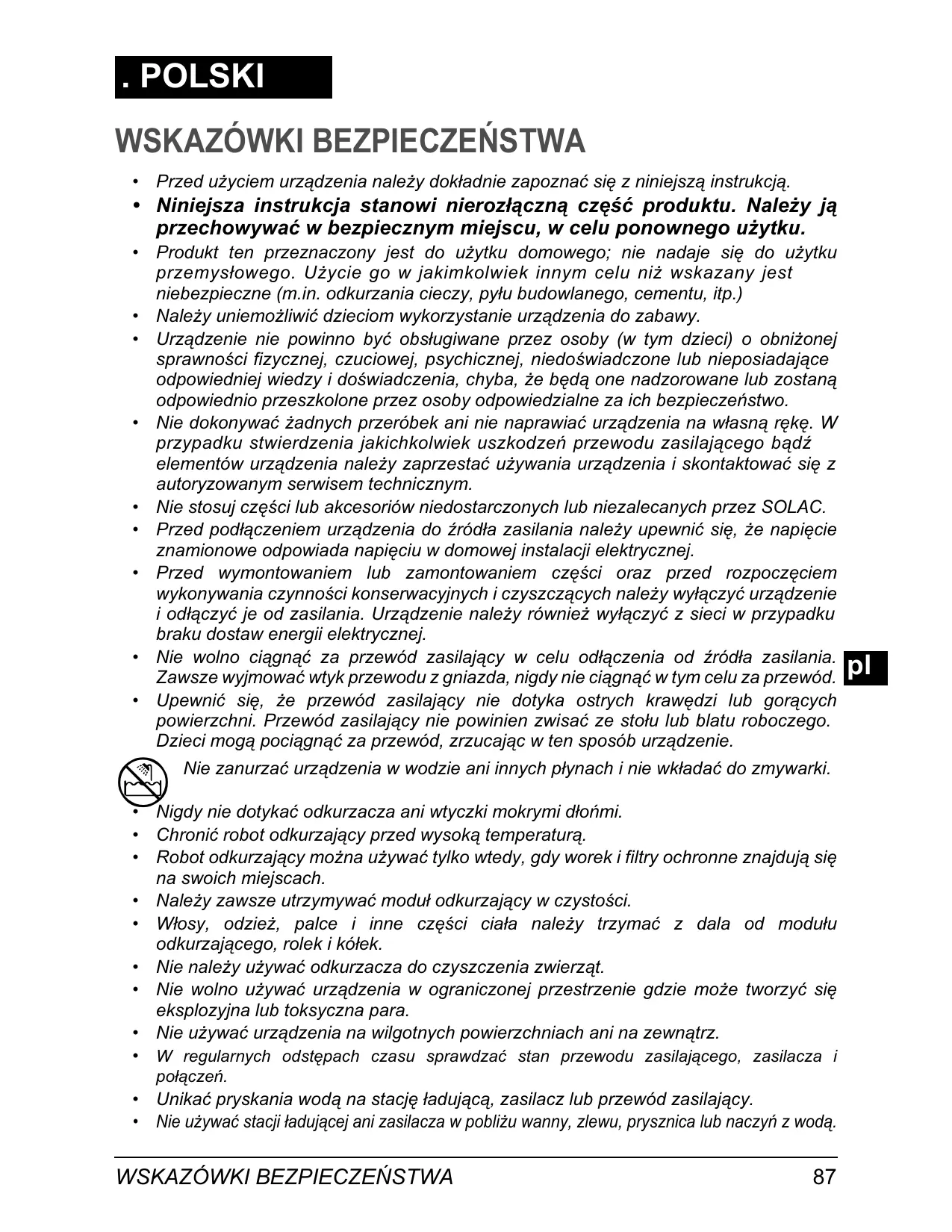 - Upewni si, e na pododze nie znajduj si przewody, kable i inne przedmioty du sze ni 150 mm. Nieprzestrzeganie zalecenia mo e doprowadzi do zapltania rolek. UWAGA! Chcc pozby si urzdzenia, NIGDY nie nale y wyrzuca go do kosza. Nale y odda je do najbli szego PUNKTU SKADOWANIA I UTYLIZACJI odpadów. Takie dziaanie pomaga chroni rodowisko.