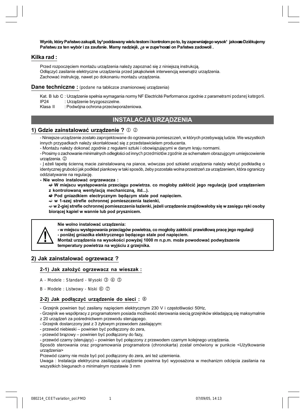 INSTRUKCJA OBSŁUGI VARIATIONS DE SILHOUETTE THERMOR