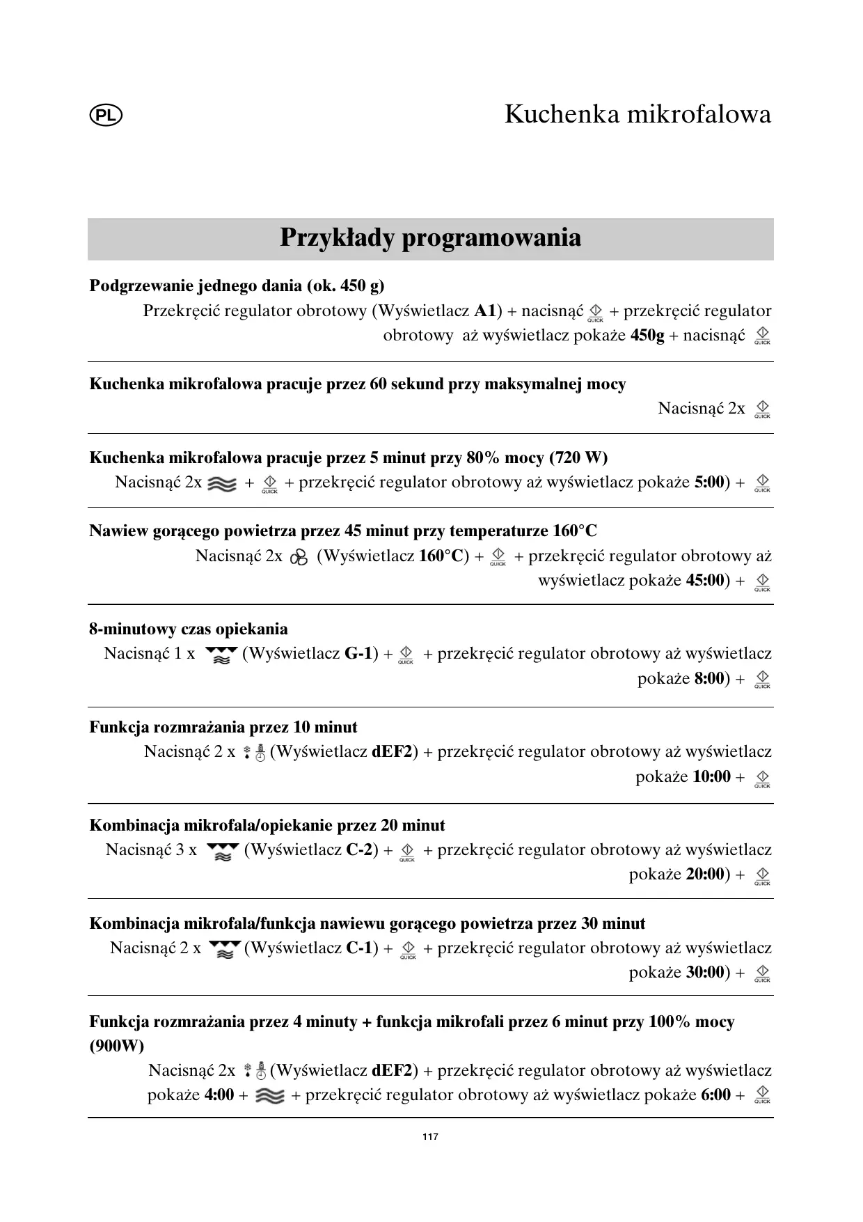 aliments du four ; les ustensiles et récipients se réchauffent non seulement pendant la fonction gril et la cuisson à chaleur tournante, mais également pendant la cuisson aux micro-ondes.
