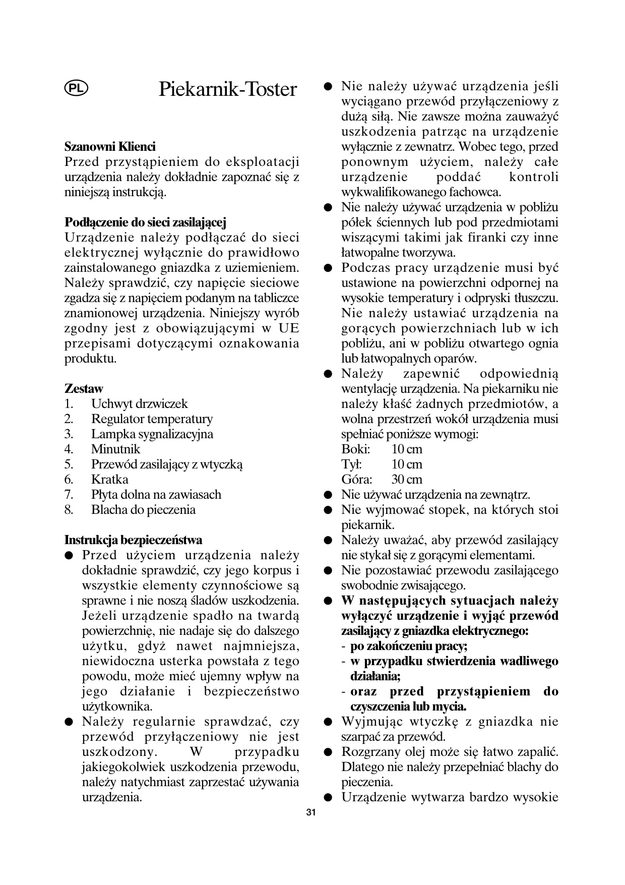 Uwaga: Nie pozwalać, aby daneci miały dostęp do elementów opakowania, poniewź mogą one spowodowej zagrożenie, np. uduszenia. - Za szkody wynikię z nieprawidłowego uzywania spreźtu lub uzytkowania niedzgodnego z instrukacja obstrugi winę ponosi wyłącznia uzytkownik.