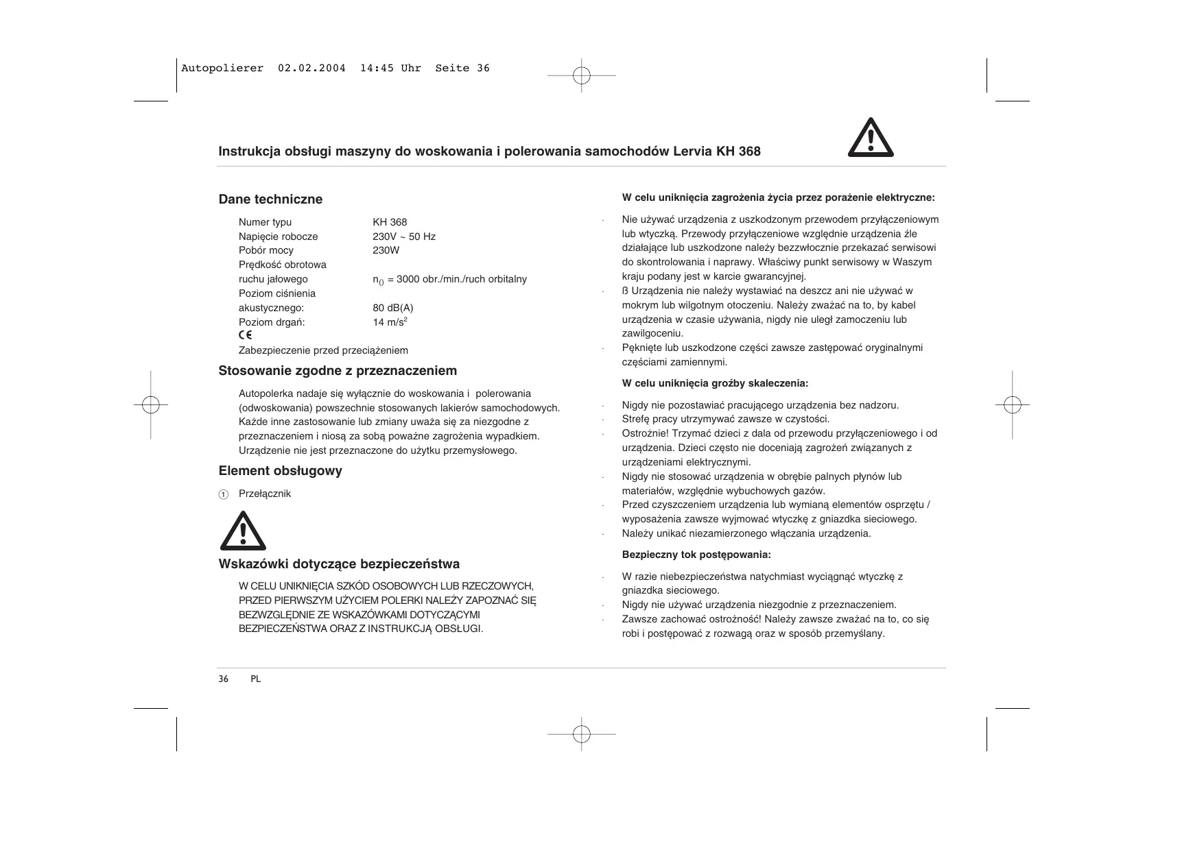 Znajdź bezpłatnie instrukcję urządzenia KH 368 LERVIA w formacie PDF.