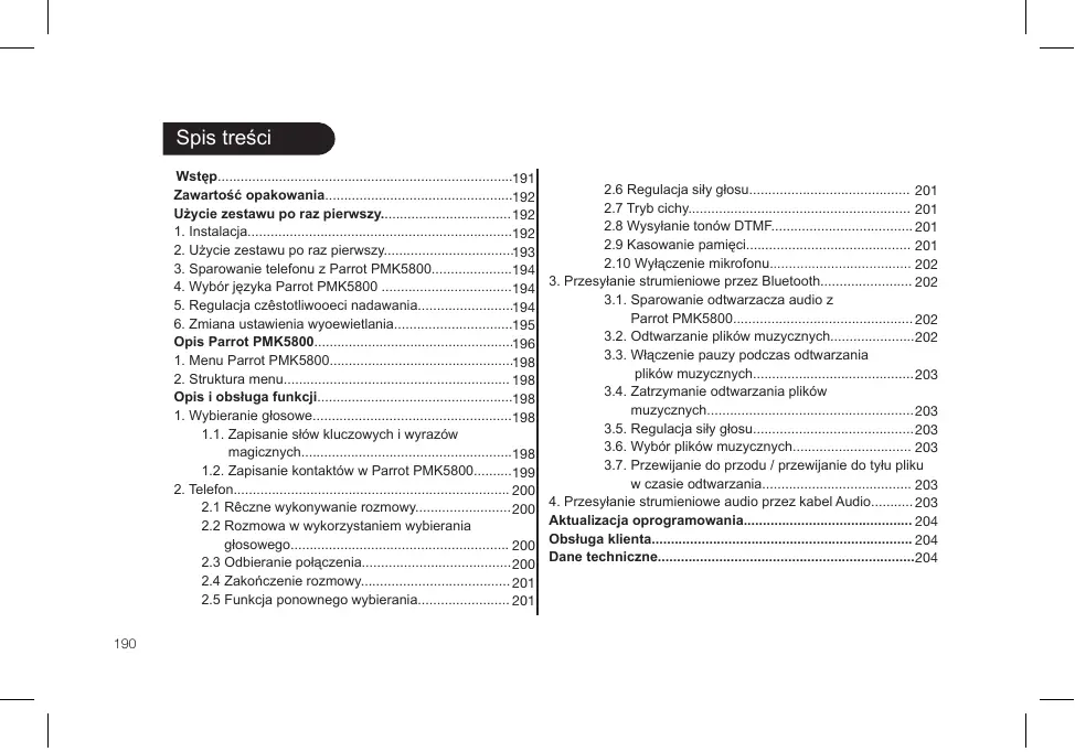 INSTRUKCJA OBSŁUGI PMK5800 PARROT