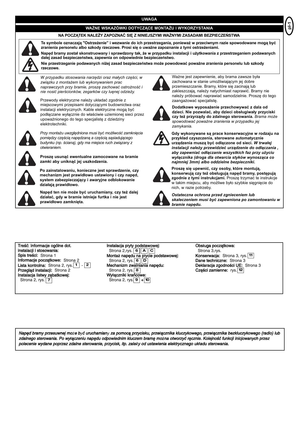 INSTRUKCJA OBSŁUGI SLY250 CHAMBERLAIN
