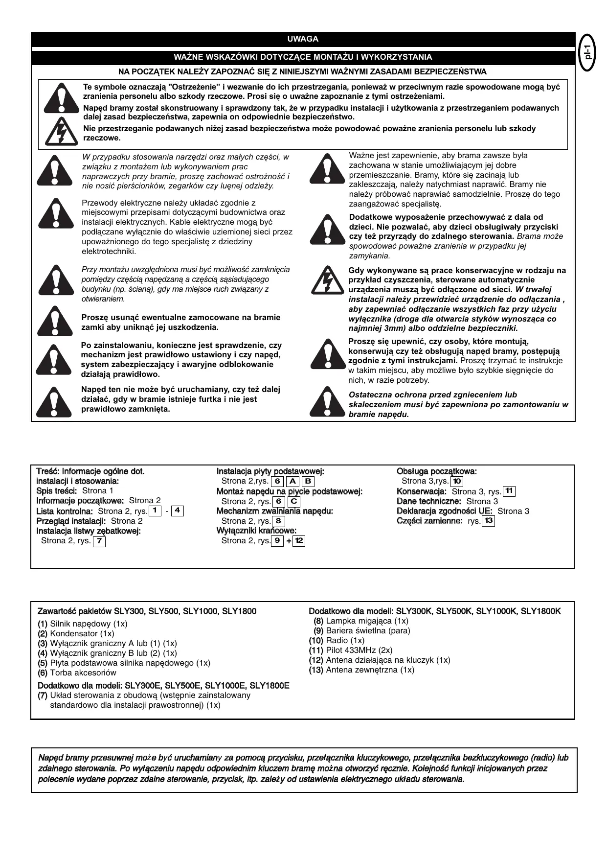 INSTRUKCJA OBSŁUGI SLY300 CHAMBERLAIN