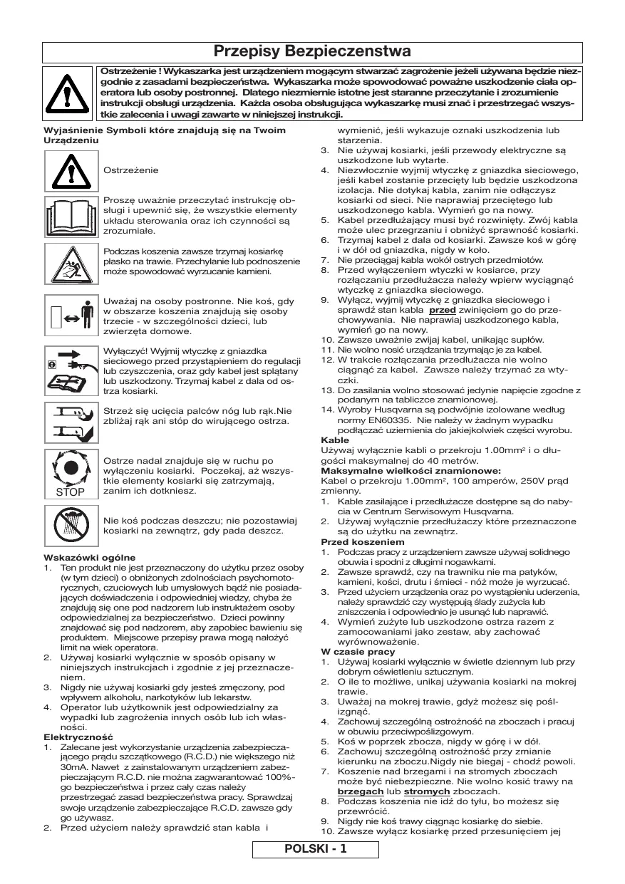 POLSKI - 1 Przepisy Bezpieczenstwa przez nie zatrawioną powierzchnię.