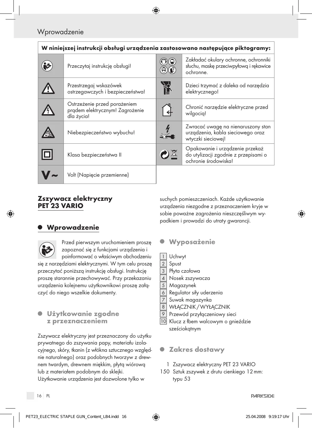 INSTRUKCJA OBSŁUGI PET23 VARIO PARKSIDE