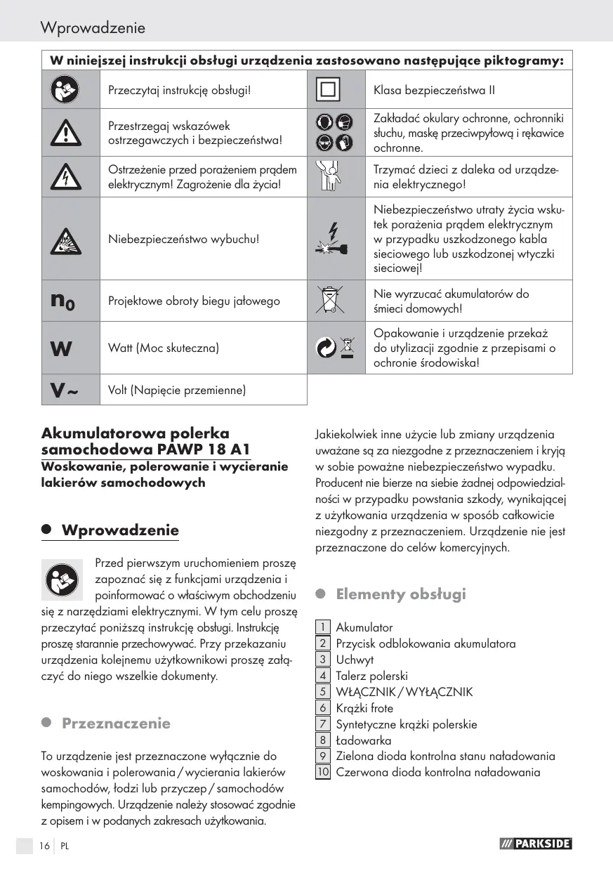 INSTRUKCJA OBSŁUGI PAWP 18 A1 PARKSIDE