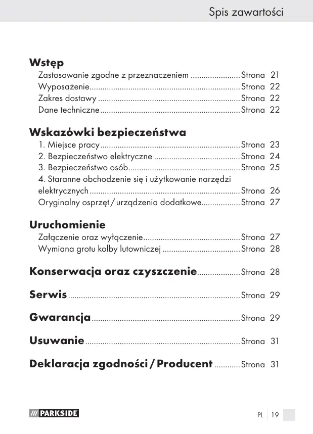 Znajdź bezpłatnie instrukcję urządzenia PLP 100 A1 SOLDERING GUN PARKSIDE w formacie PDF.