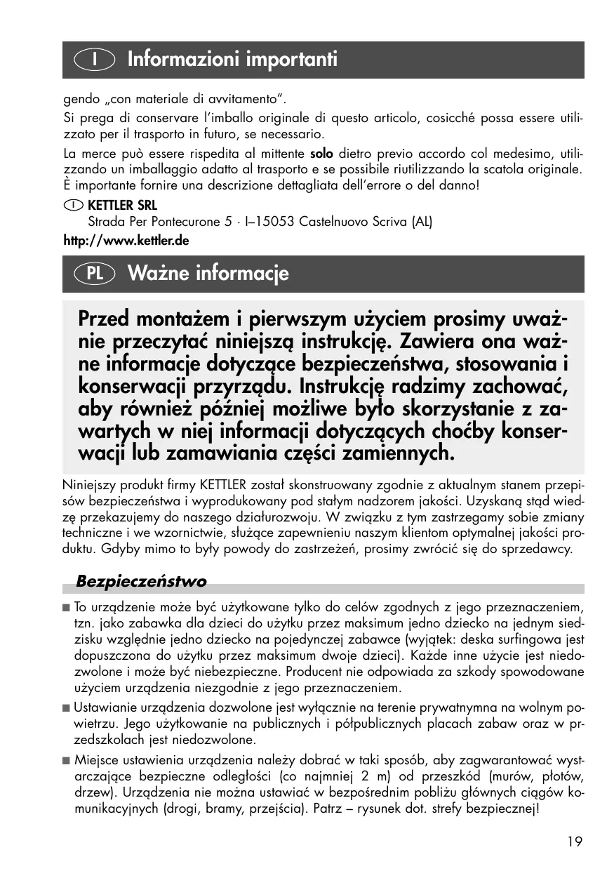 Pobierz instrukcję dla swojego w formacie PDF za darmo! Znajdź swoją instrukcję SCHAUKEL 8371-750 - KETTLER i weź swoje urządzenie elektroniczne z powrotem w ręce. Na tej stronie opublikowane są wszystkie dokumenty niezbędne do korzystania z urządzenia. SCHAUKEL 8371-750 marki KETTLER.