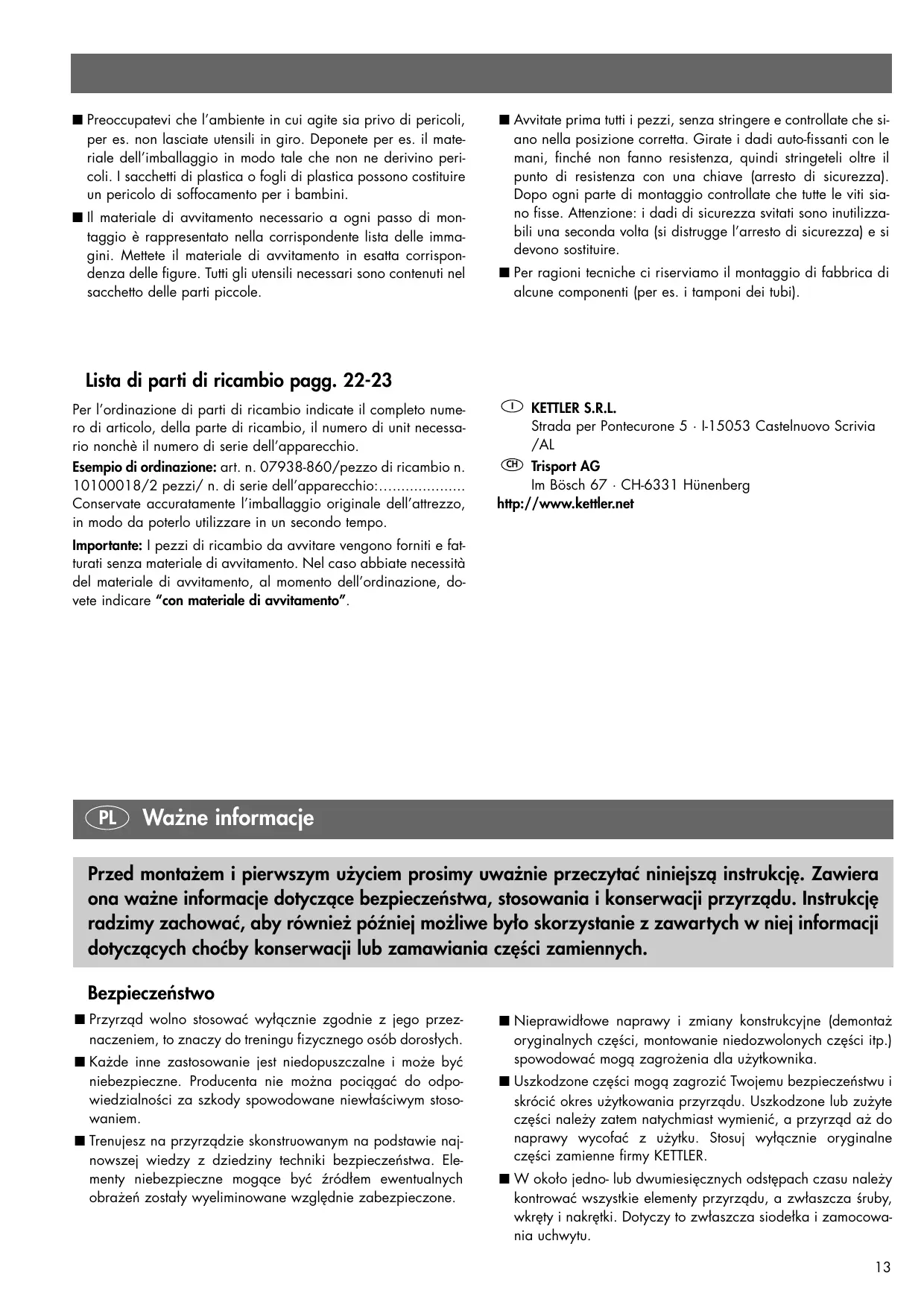 Znajdź bezpłatnie instrukcję urządzenia SPEED PRO KETTLER w formacie PDF.
