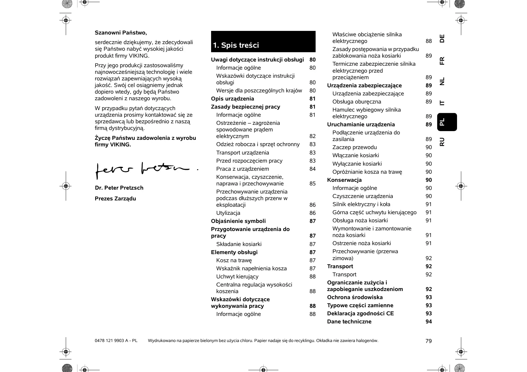 FR Avant d’utiliser l’appareil, remplacer les pièces défectueuses, usées ou endommagées. Remplacer les autocollants d’avertissement et de danger endommagés ou illisibles. Vous trouverez des autocollants de remplacement et toutes les autres pièces de rechange chez les revendeurs spécialisés VIKING.