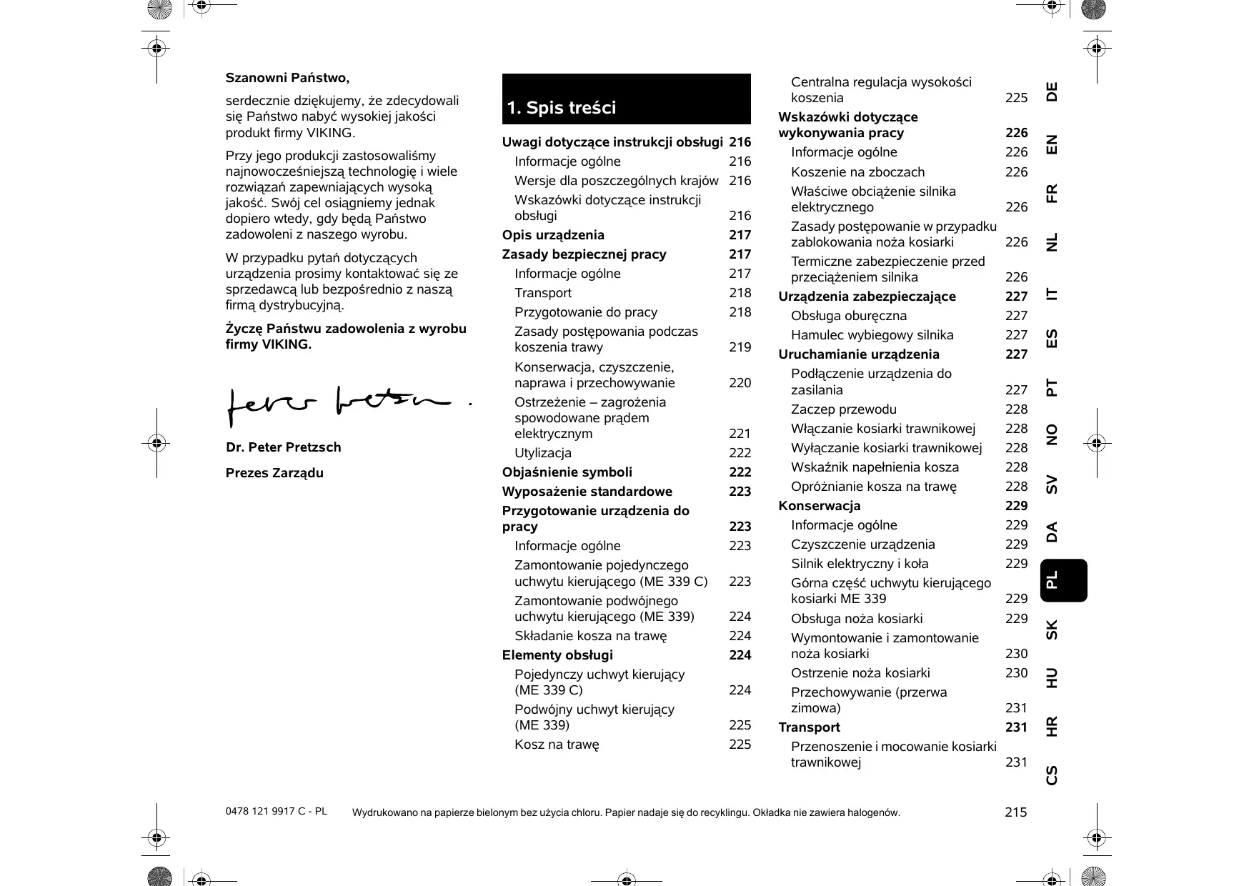 Ajuste central da altura de corte Instruções para trabalhar Generalidades Corte em encostas Esvaziar a cesta de recolha de relva Manutenção Declaração de conformidade CE do fabricante Dados técnicos Localização de falhas Plano de manutenção