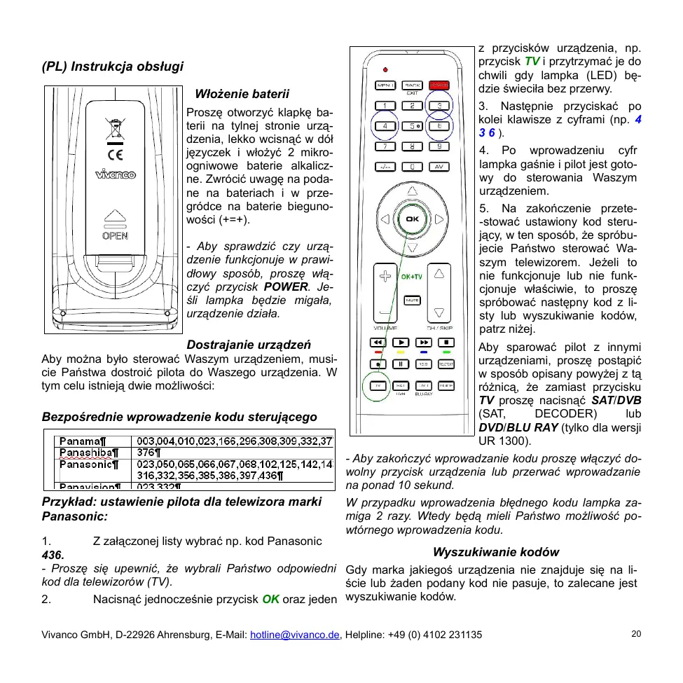 Vivanco GmbH, D-22926 Ahrensburg, E-Mail: hotline@vivanco.de, Helpline: +49 (0) 4102 231135