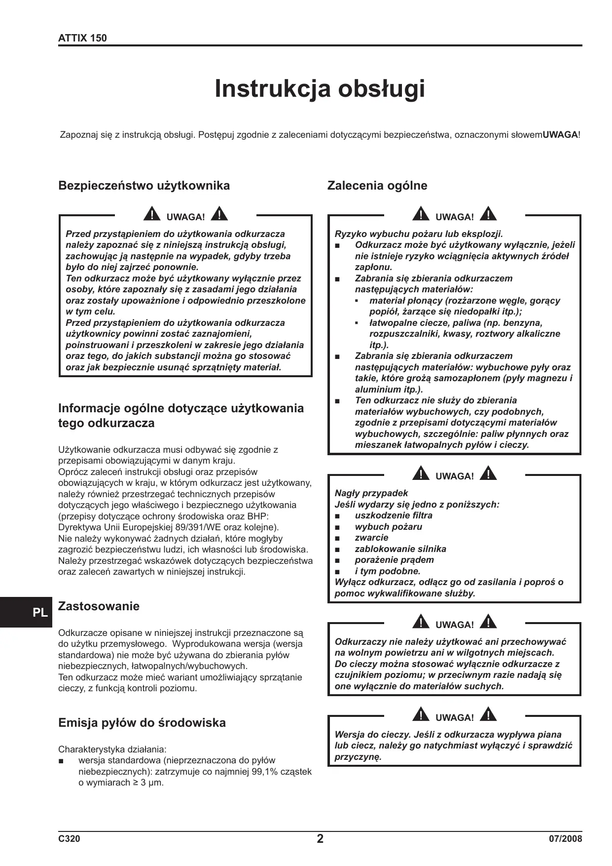 ATTIX 150 - Odkurzacz przemysłowy NILFISK - Bezpłatna instrukcja obsługi