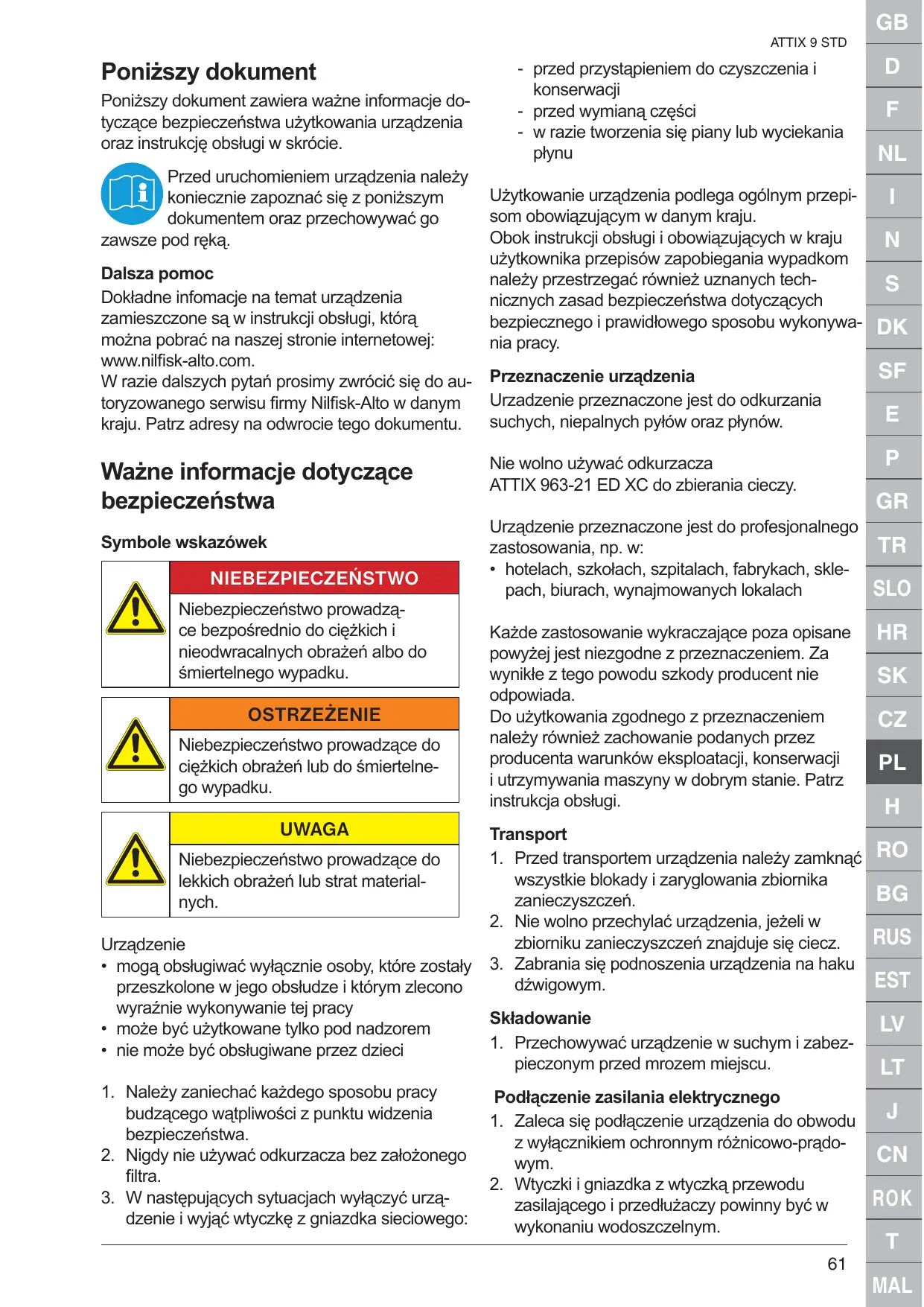 INSTRUKCJA OBSŁUGI ATTIX 963-21 ED XC NILFISK