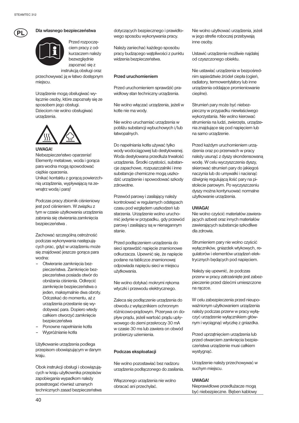 INSTRUKCJA OBSŁUGI STEAMTEC 312 NILFISK