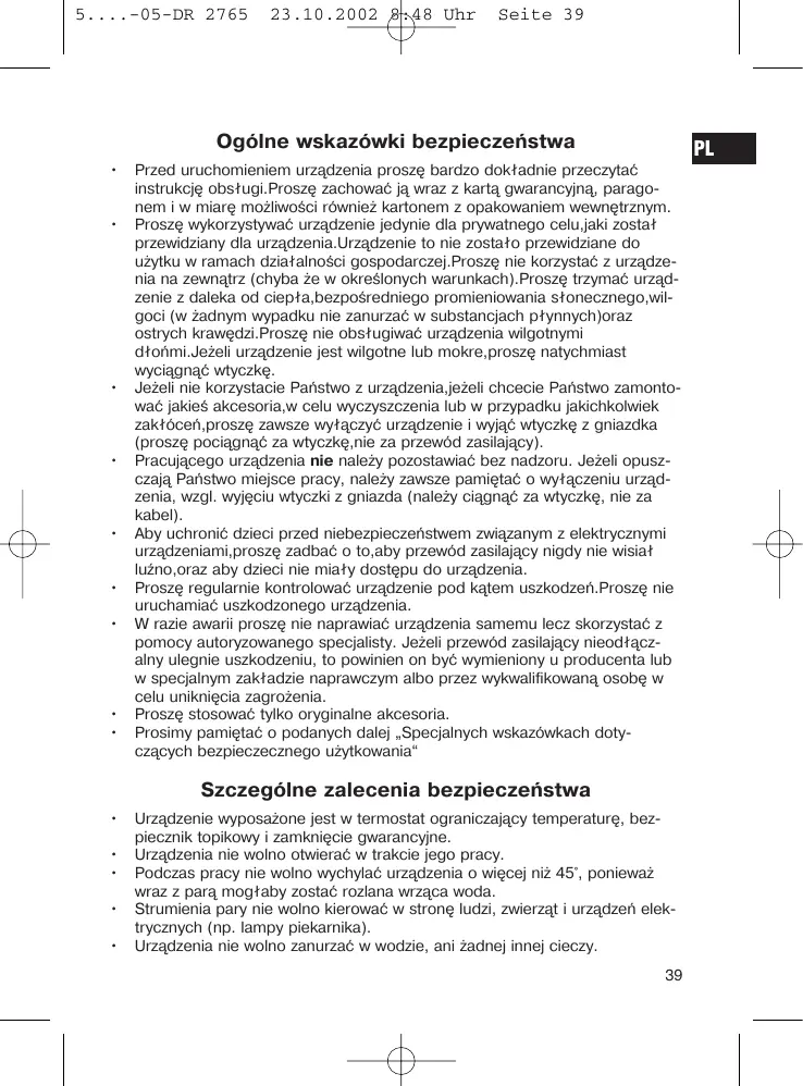 Seite 39 Ogólne wskazówki bezpieczeństwa