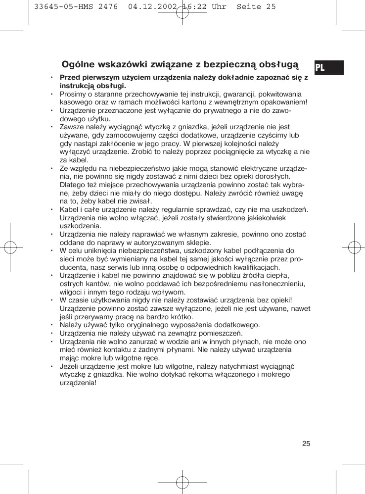 Seite 25 Ogólne wskazówki związane z bezpieczną obsługą