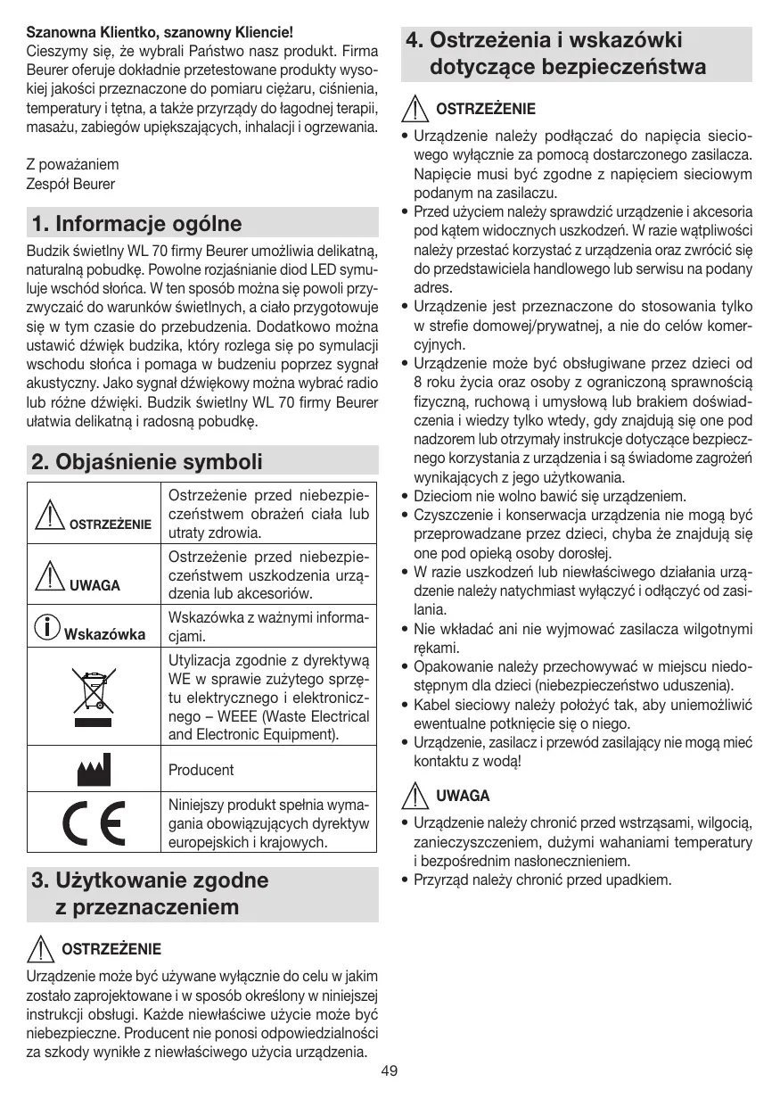WL 70 - BEURER - Bezpłatna instrukcja obsługi