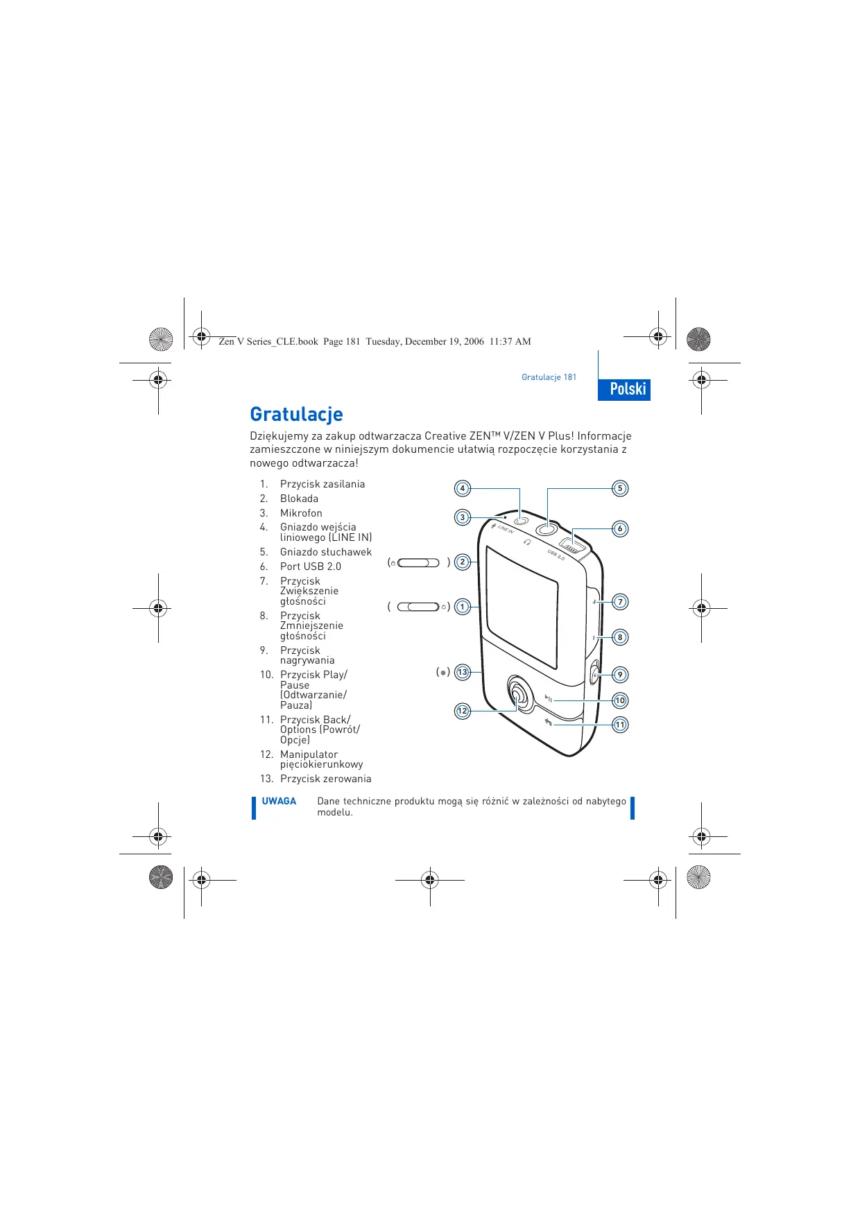 INSTRUKCJA OBSŁUGI ZEN V CREATIVE