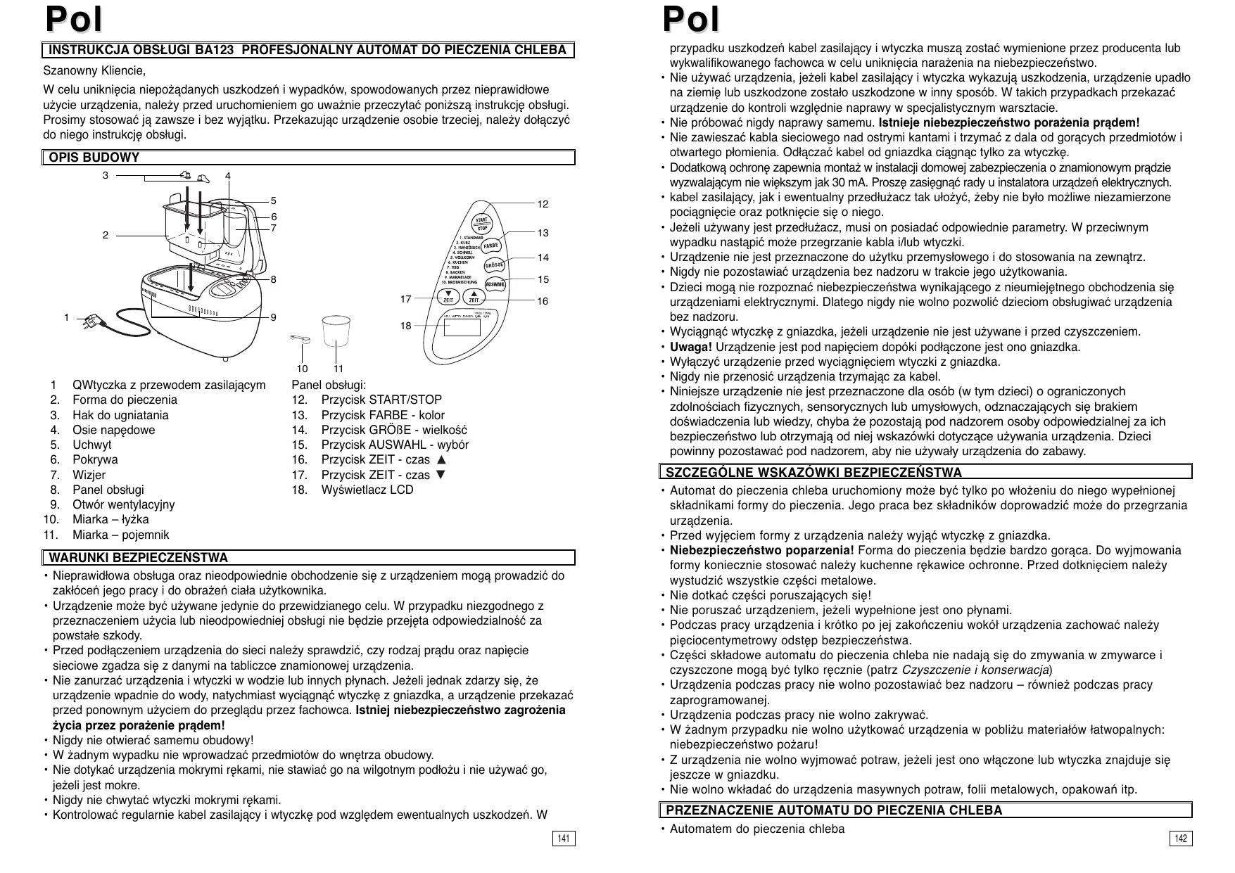 COOL TOUCH - Maszyna do chleba ELTA - Bezpłatna instrukcja obsługi