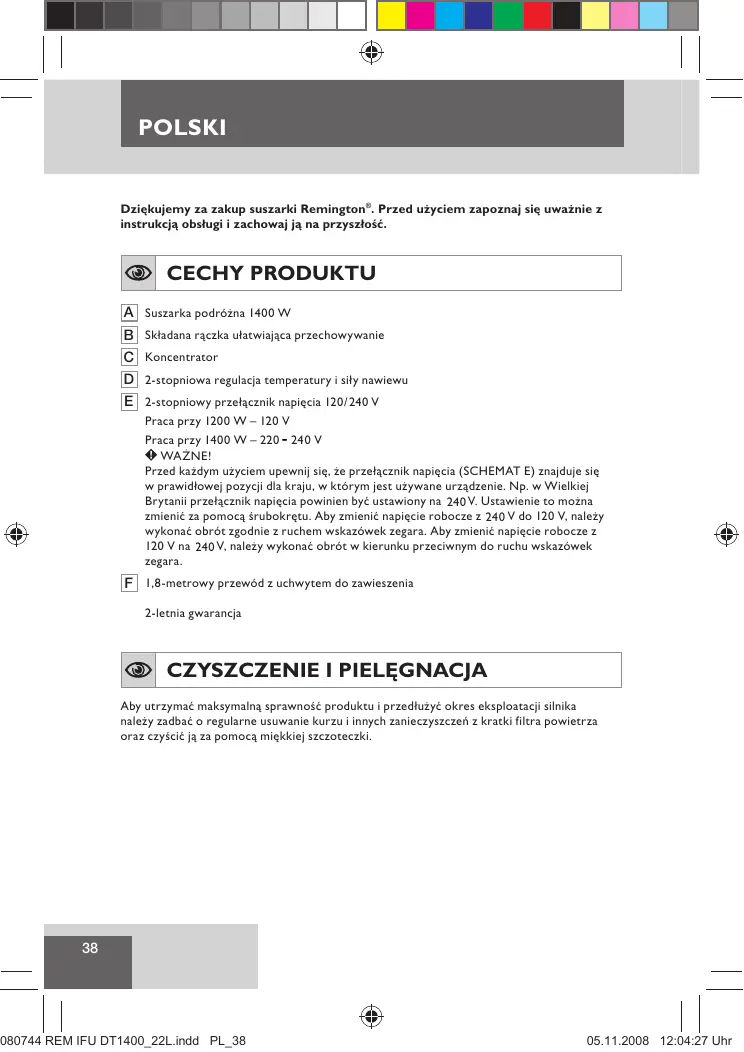 Znajdź bezpłatnie instrukcję urządzenia D2400 REMINGTON w formacie PDF.