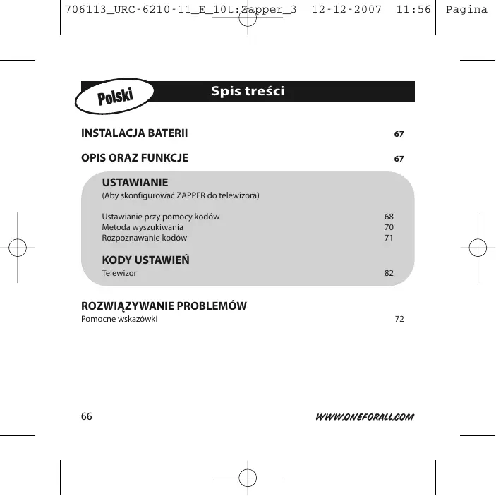 URC 6210 - Uniwersalny pilot ONEFORALL - Bezpłatna instrukcja obsługi