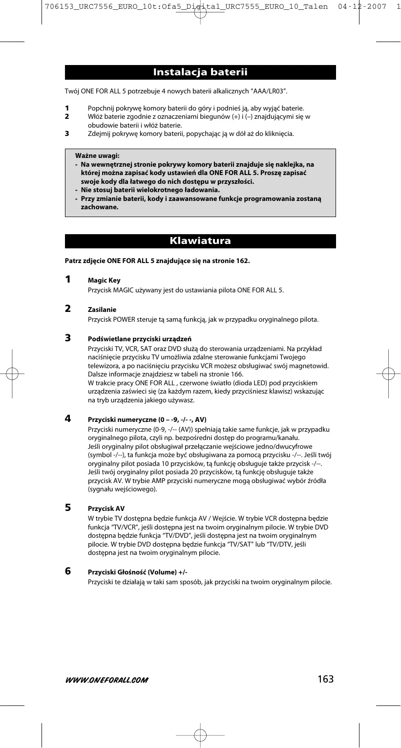 URC 7556 - Uniwersalny pilot ONEFORALL - Bezpłatna instrukcja obsługi