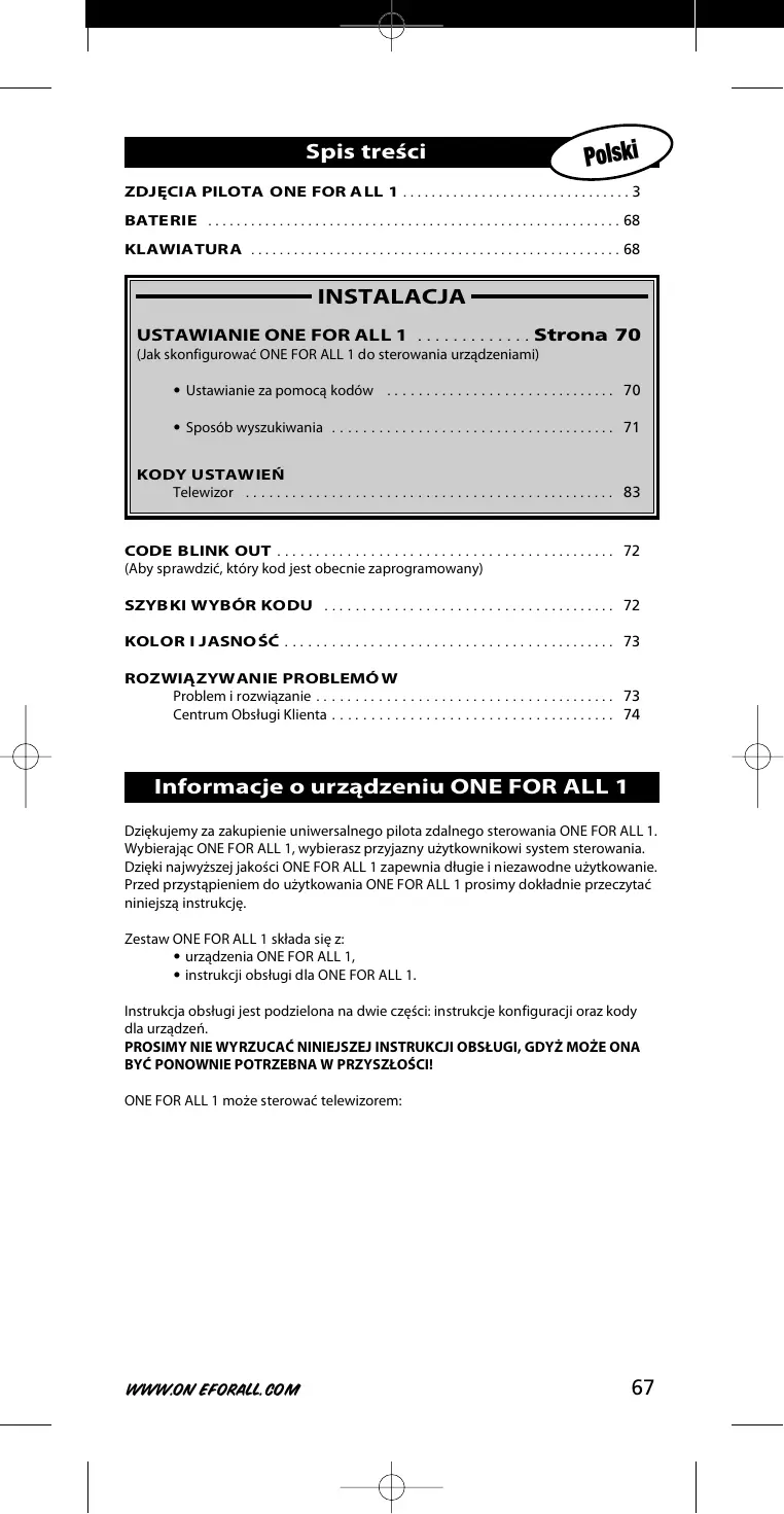 INSTRUKCJA OBSŁUGI URC 7711 ONEFORALL