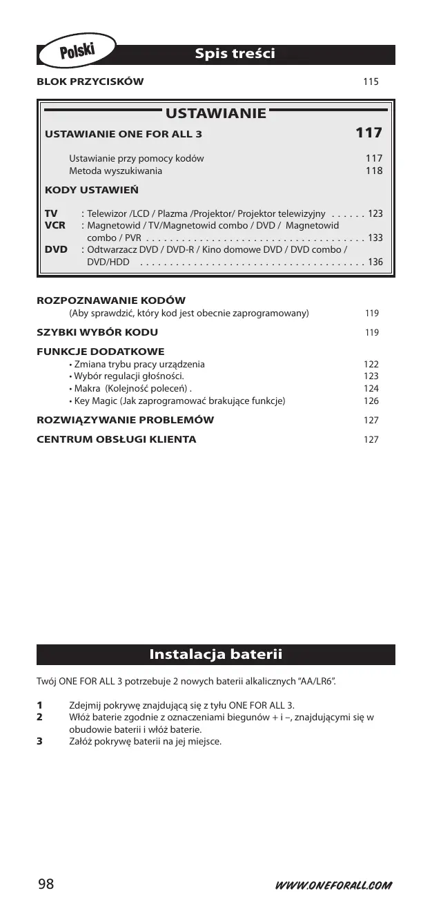 URC 7930 - Uniwersalny pilot ONEFORALL - Bezpłatna instrukcja obsługi