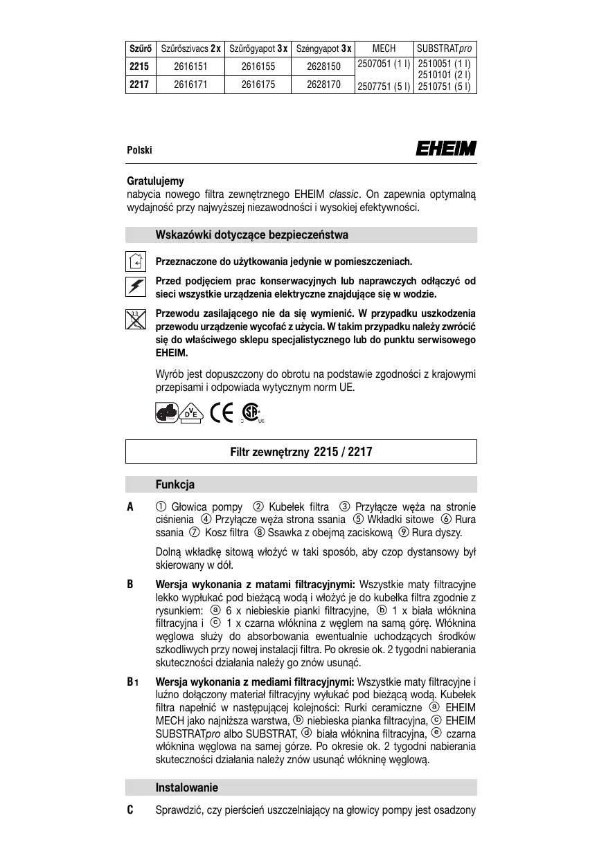 Pobierz instrukcję dla swojego Filtr do akwarium w formacie PDF za darmo! Znajdź swoją instrukcję 2217 - EHEIM i weź swoje urządzenie elektroniczne z powrotem w ręce. Na tej stronie opublikowane są wszystkie dokumenty niezbędne do korzystania z urządzenia. 2217 marki EHEIM.