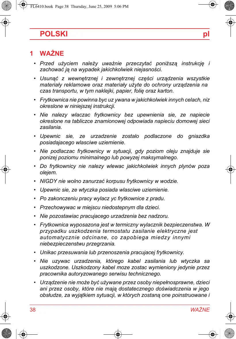- Frytkownica nie powinna byc uz ywana w jakichkolwiek innych celach, niz okreslone w niniejszej instrukcji.