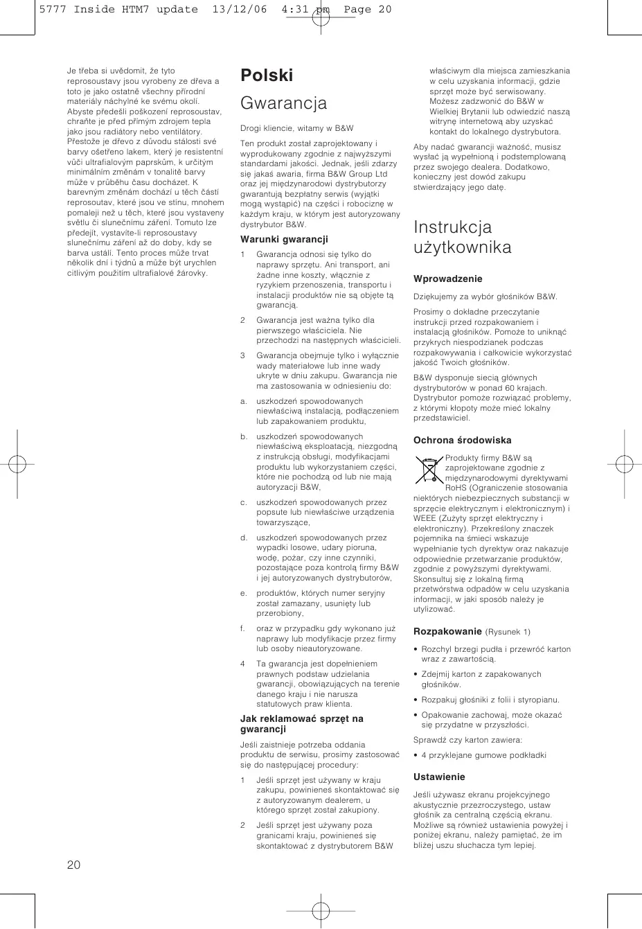 Znajdź bezpłatnie instrukcję urządzenia B&W HTM7 B&W w formacie PDF.