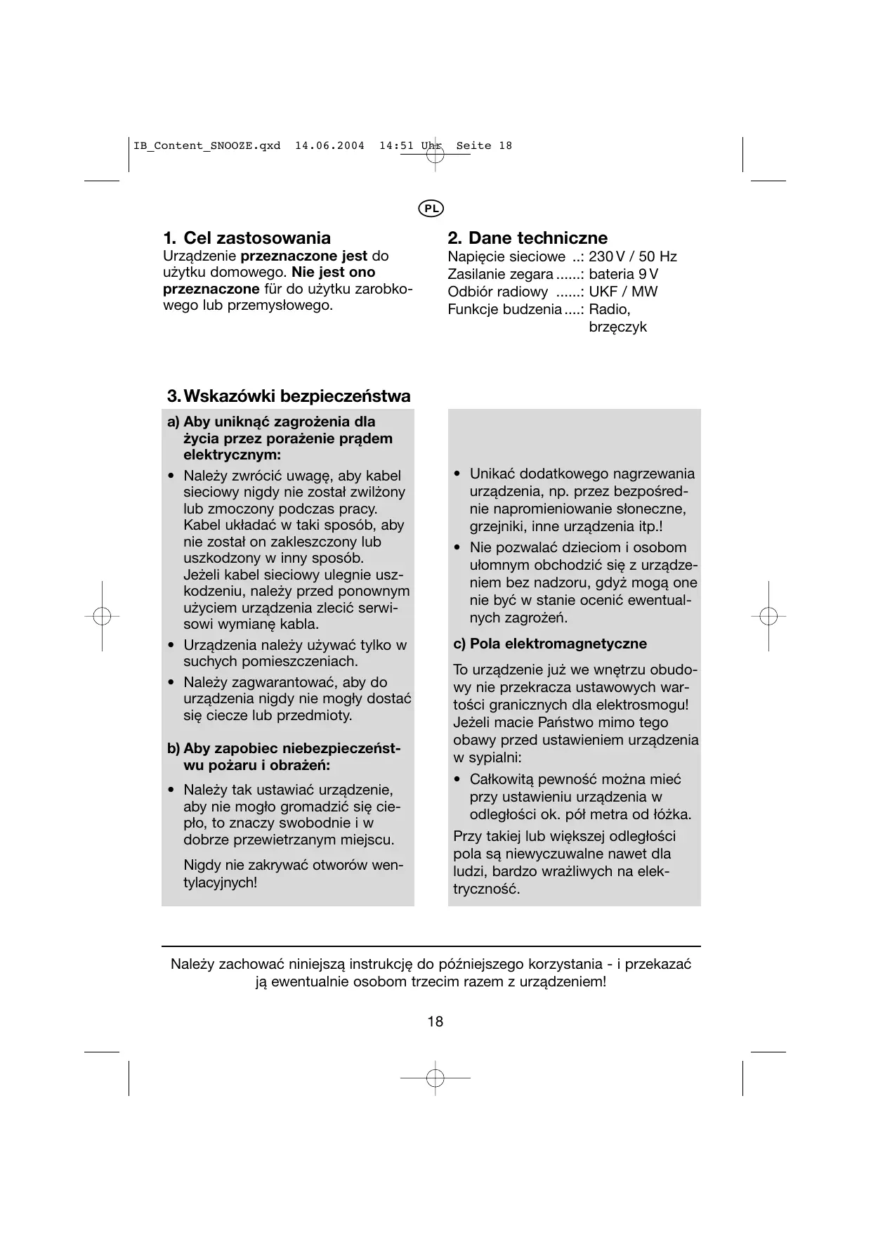 Urzadzenie przyznaczone jest do uzytku domowego. Nie jest ono przyznaczone für do uzytku zarobkowa go lub przyemysłowego.