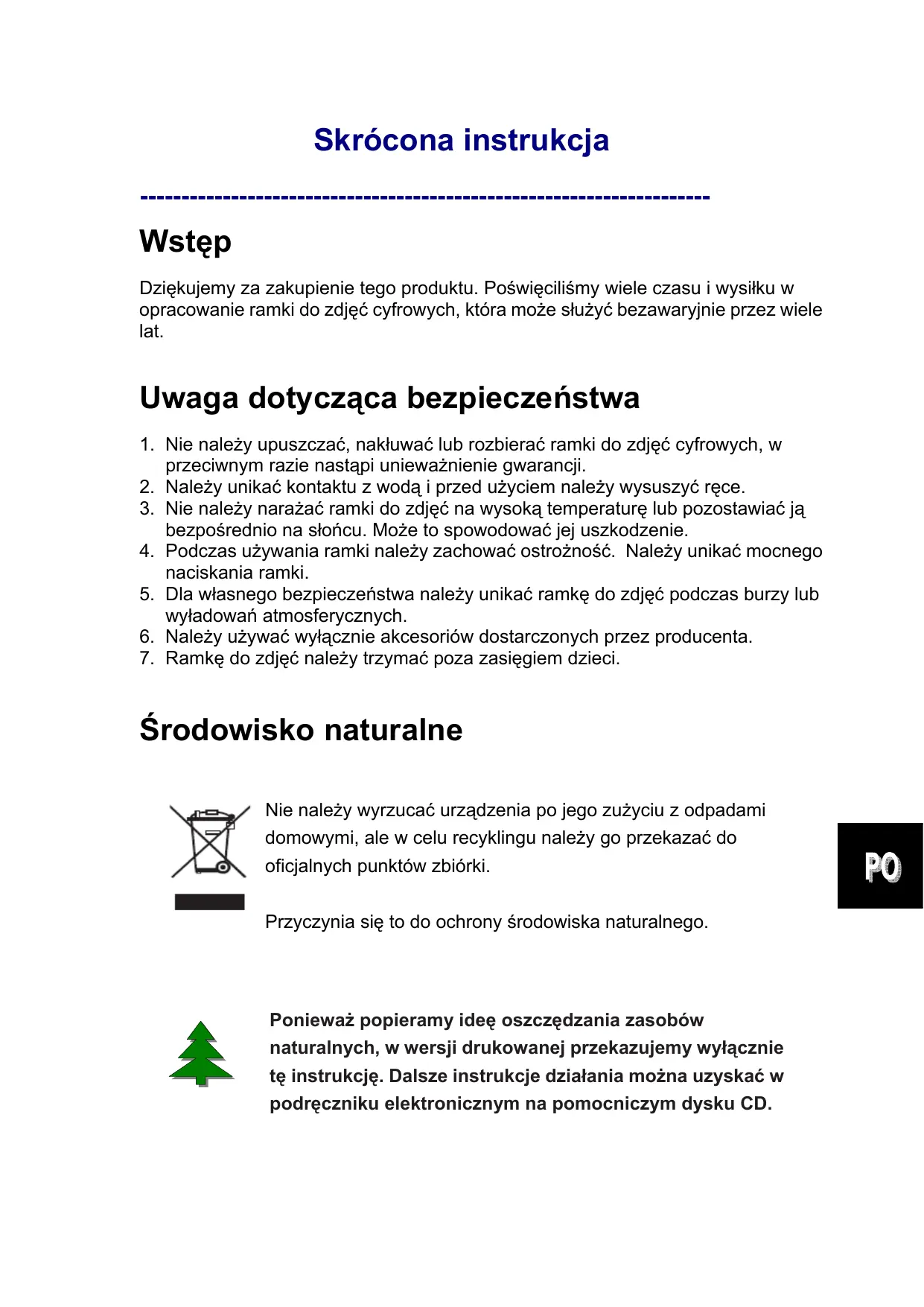 Wstęp Dziękujemy za zakupienie tego produktu. Poświęciliśmy wiele czasu i wysiłku w opracowanie ramki do zdjęć cyfrowych, która może służyć bezawaryjnie przez wiele lat.