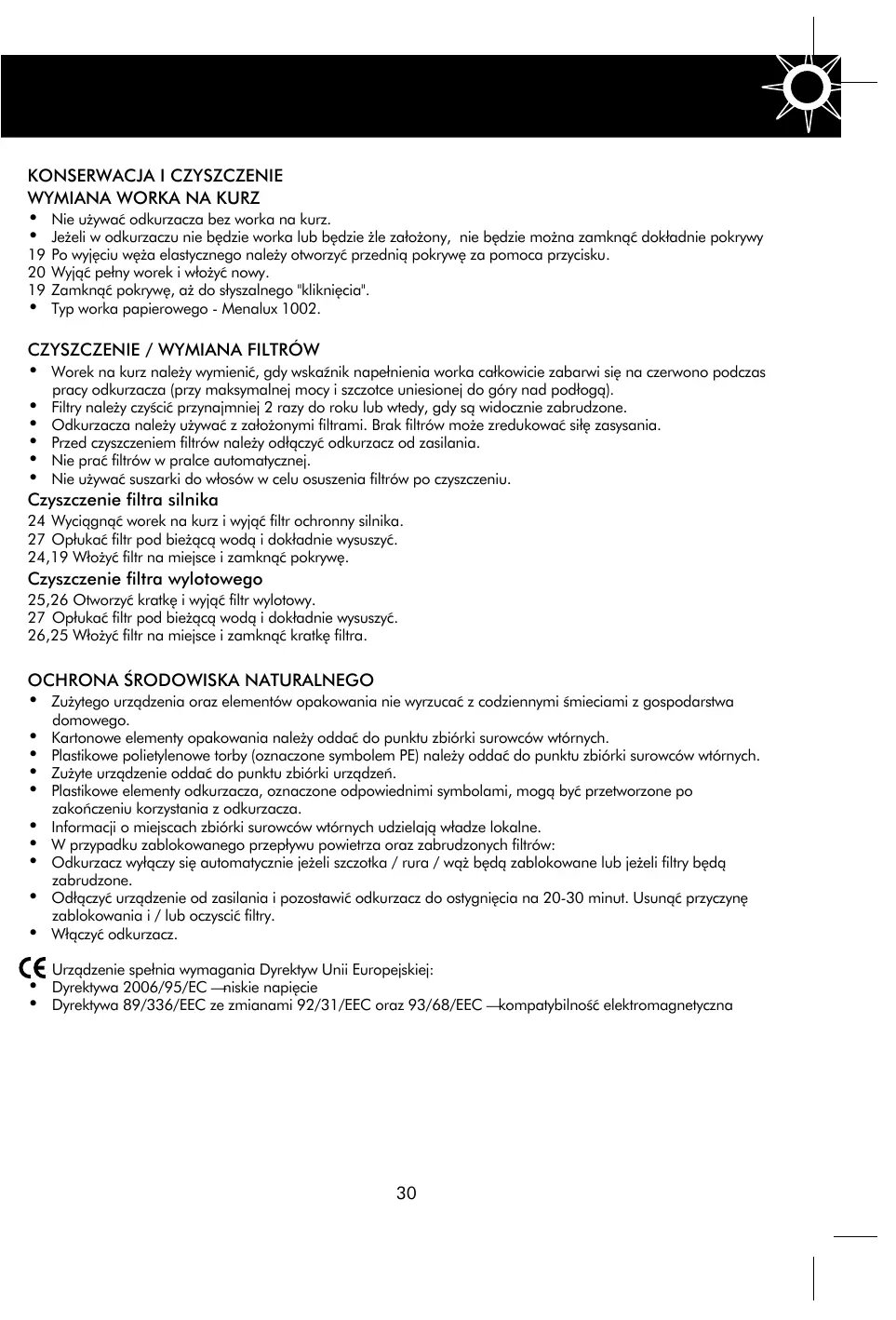 - Plastikowe elementy odkurzacza, oznaczone odpowiednimi symbolami, mogq byc przyrozwerzone po zakońceniu korzystania z odkurzacza.