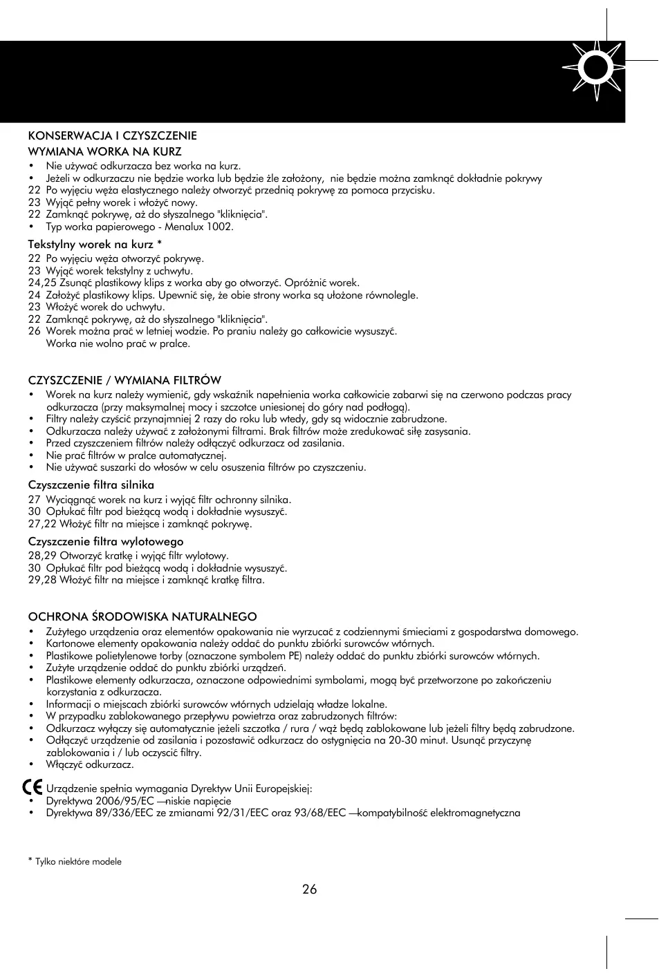 - Pržed przystqiwniem do czyszczenia, konserwacci lub po zakońceniu pracy odkurzacza, naleź wyjć wyczȩ przemodu zasilajciego z gniadzka. Nie pożostawiec wączonego odkurzacza bez nadzoru. Nie pożwalac dzciemni na przybeynyanie w poplbru wączonego urzadzenia. Odkurzac zreachowyac wymișcu niedostepnym dla daneioci.