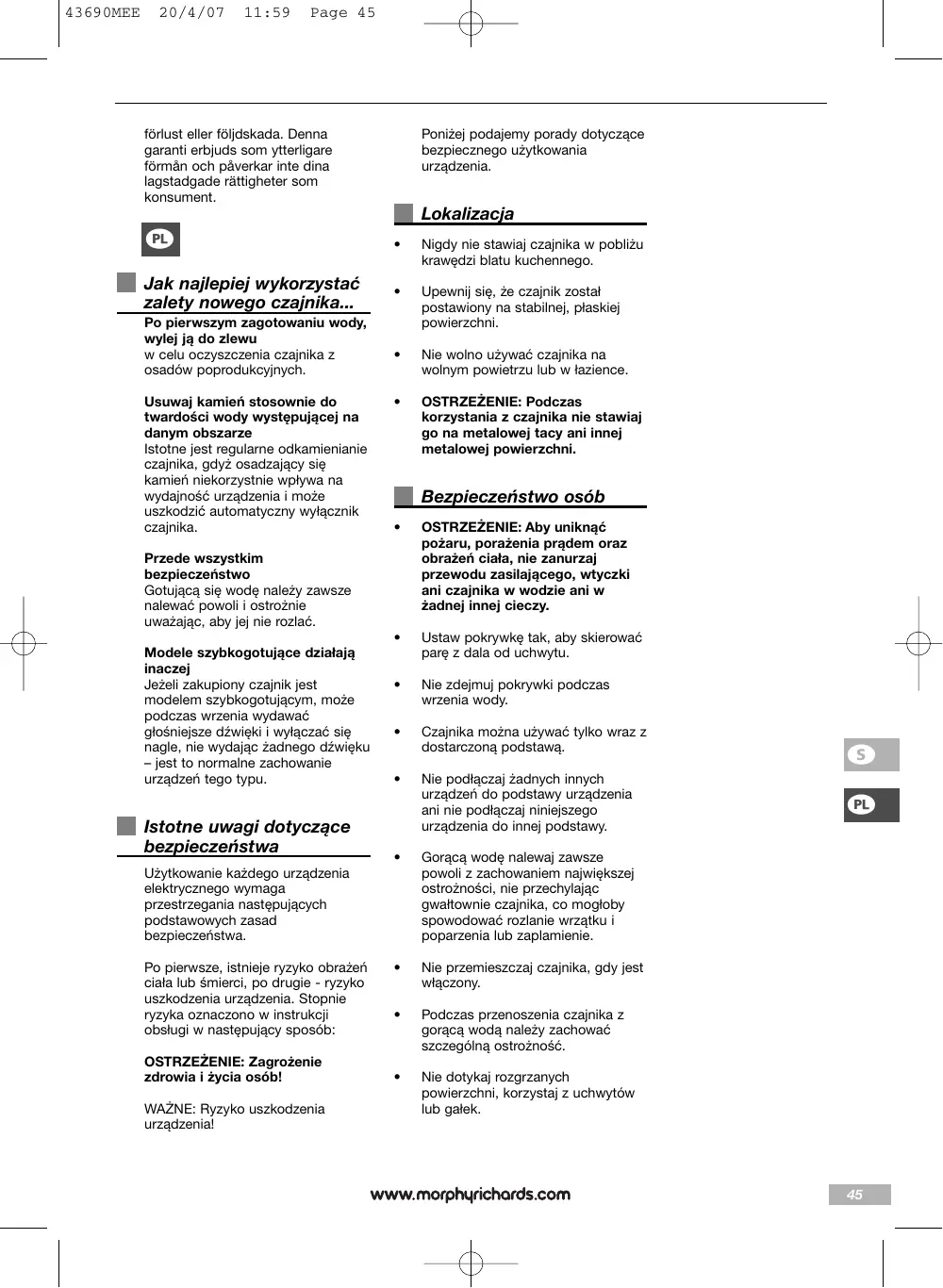 Firma Morphy Richards nie wykonuje żadnych czynności serwisowych w ramach niniejszej gwarancji.