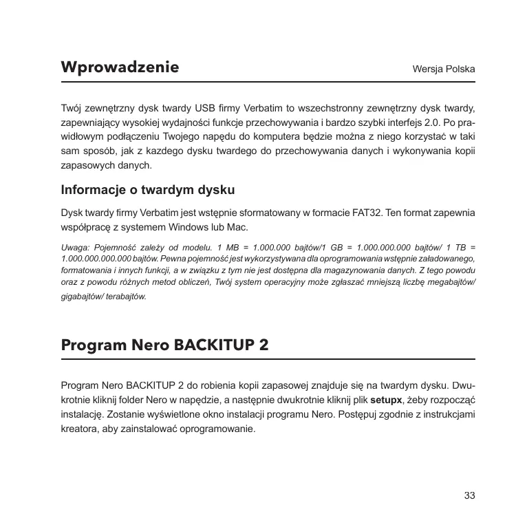 EXTERNAL HARD DRIVE USB 2.0 - Zewnętrzny dysk twardy VERBATIM - Bezpłatna instrukcja obsługi